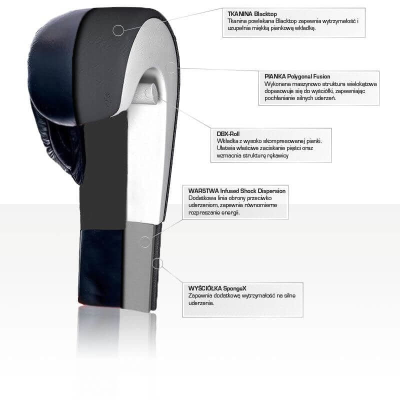 Parametry techniczne rękawic bokserskich B-2v6 :