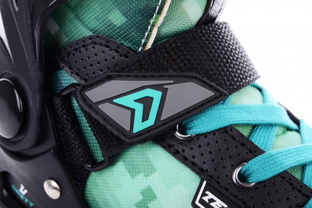 Potrójny system zapięcia – sznurowadła, pasek na rzep oraz górna klamra – pozwala na precyzyjne dopasowanie rolki do stopy, co poprawia stabilność i komfort jazdy.